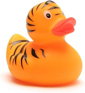 Duckshop I Badeente I Quietscheente I Ente Tiger - L: 7,5 cm - inkl. Badeenten-Schlüsselanhänger im Set