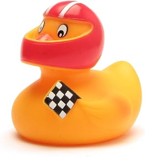 Duckshop I Badeente I Quietscheente I Ente Rennfahrer I L: 8 cm I inkl. Badeenten-Schlüsselanhänger im Set