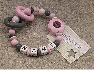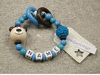 Die eingearbeiteten Namensperlen haben abgerundete Ecken, so kann sich das Baby nicht verletzen. Wir fertigen jeden Greifling mit Namen sowie alle Beißringe und Rasseln liebevoll in Handarbeit. Greifling mit Namen: spricht die Sinne eines Babys an. Unser Greifling mit dem Namen des Kindes bietet gleich mehrere Erlebnisse auf einmal. Er ist so gestaltet, dass ihn Dein Kind leicht greifen und festhalten kann. Die runde Form ist für kleine Hände ideal. Dein Kind kann ausprobieren, wie sich Die Anzahl der geprägten Kunststoffbuchstaben ist auf max. 10 Stück begrenzt, die Anzahl der Perlen & Größe des Greifling (ca. 8,5cm Aussenmaß) kann je nach Länge des Namens variieren. Kaufabwicklung: Dieser Artikel wird individuell Ihren Wünschen entsprechend mit dem Namen des Kindes hergestellt.