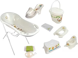 9er Set Perl Premium Disney Winnie Puuh perl weiß Badewanne XXL 100 cm + Badewannenständer + Badesitz + Topf + WC Aufsatz + Hocker + Windeleimer + Ablaufschlauch + Waschhandschuh