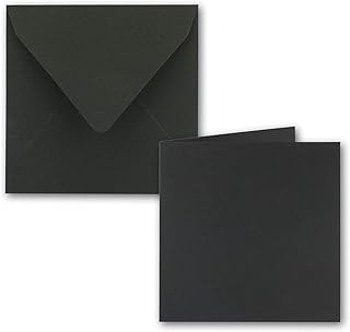 150x Quadratisches Faltkarten-Set aus Kraft-Papier in Schwarz 15, cm - Doppel-Karten & Briefumschläge aus Recycling-Papier - Serie Umwelt
