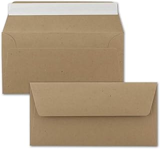 50x Kraftpapier Umschläge DIN Lang - Braun ÖKO - Haftklebung selbstklebend 11 x 22 cm - 120 g/m² Briefumschläge ohne Fenster aus Recycling Papier - von NEUSER PAPIER