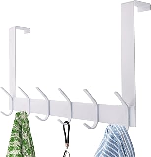 Bethom Türgarderobe mit 6 Haken Türhaken zum Aufhängen Edelstahl Türhänger Türhakenleiste Handtücher Taschen Aufbewahrung Kleiderhaken für Badezimmer Küche Büro, Weiß, Tür 4,5 cm Ohne Bohren