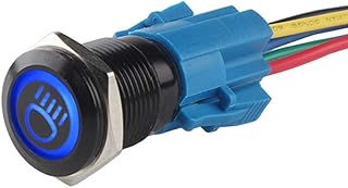 Mintice rostfreier Stahl 19mm KFZ Kippschalter Wippschalter Druckschalter Schalter Drucktaster 12V Blau LED Licht Metall Fernlicht Steckdose Stecker
