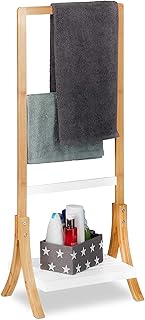 Relaxdays Handtuchhalter Bambus, mit Ablage & 3 Handtuchstangen, freistehender Handtuchständer, 103x41x28cm, Natur/weiß