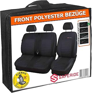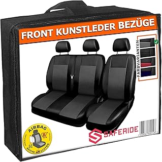 2er Set Saferide Autositzbezüge Transporter universal | Bus Sitzbezüge Kunstleder Schwarz für Airbag geeignet | für Vordersitze | 1+2 Autositze vorne Nicht teilbar