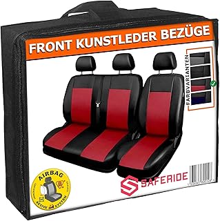 2er Set Saferide Autositzbezüge Transporter universal | Bus Sitzbezüge Kunstleder Rot für Airbag geeignet | für Vordersitze | 1+2 Autositze vorne Nicht teilbar