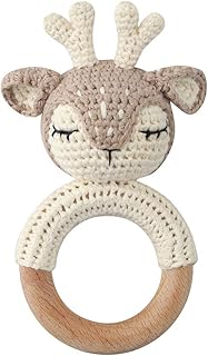 Beißring gehäkelte süße Reh mit integrierter Babyrassel, Greifling Spielzeug Beißring | Geschenk zur Geburt, Babyparty, Handmade für Baby & Kinder Junge/Mädchen (Reh)