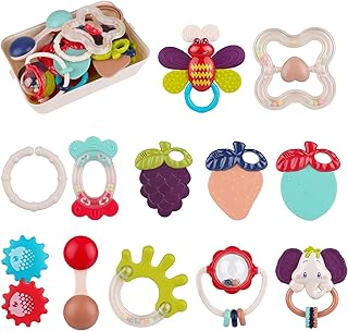 CestMall 9 Pack Rassel Beißring Set Baby Spielzeug Shaker Greifen Rassel Baby Greifling Baby Spielzeug Kleinkind Spielzeug Frühe Lernspielzeug für 3 6 9 12 Monate Jungen Mädchen Baby Geschenke