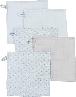 roba organic 5er Set Waschlappen 'Lil Planet' hellblau/sky, Musselin, Bio-Baumwolle, GOTS, 25x25cm