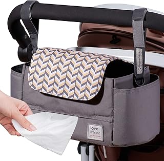 SUNVENO Love little me Kinderwagen Organizer, Kinderwagen Einkaufstasche (Grau)
