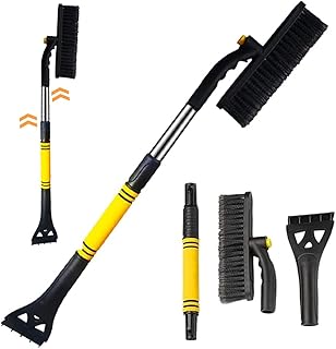 XiXiRan Eiskratzer Auto mit Besen Ausziehbar, Schneefeger Ausziehbar, Eiskratzer Schaumstoffgriff, Schneebürste Kratzfrei, für Auto windschutzscheibe und Fenster, geeignet für LKW und SUV(Gelb)