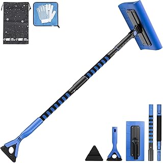 SEG Direct 127CM Ausziehbare Schneebürste mit Eiskratzer 3 in 1 Schneeräumwerkzeug mit 270° Bürstenkopf Groß und Schneefeger für SUV Auto Truck Bus Kleintransporter(Blau)