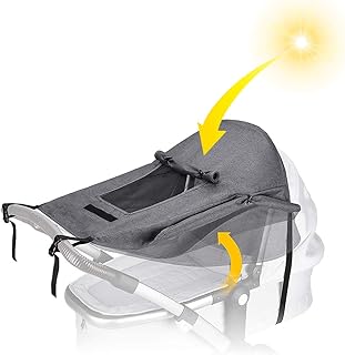 PHYLES Kinderwagen Sonnensegel,Universal Sonnenschutz Kinderwagen mit UPF50 + UV Schutz und Faltbarem Kinderwagenverdeck für Anti / Regen / Wind / Sonne -Grau