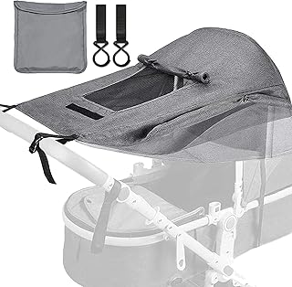 Adorfine Kinderwagen Sonnensegel Universal sonnenschutz buggy mit Sichtfenster und breite Seitenflügel mit UV Schutz 50+ und Wasserdicht, Verstellbar Sonnenschutz für Kinderwagen (Grau)